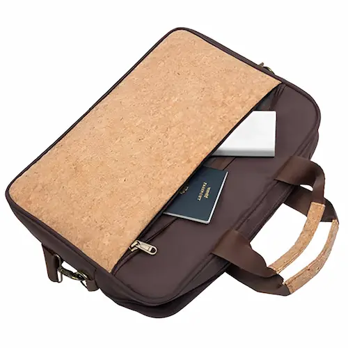 A unique office laptop bag made from cork material, perfect for eco-conscious users.